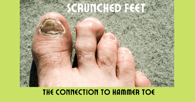 Scrunched feet can lead to hammer toe due to the prolonged contraction and tightening of the muscles in the feet. Over time, this can cause the muscles and tendons to shorten, leading to the toes becoming bent and fixed in the contracted position. This can also cause the joints in the toes to become stiff and immovable, leading to the development of hammer toes.